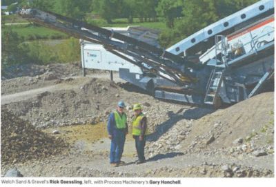Welch produces 1 1/2-in. minus product from the top screen deck, and everything from 3/8-in pea gravel all the way down to sand from the second deck.